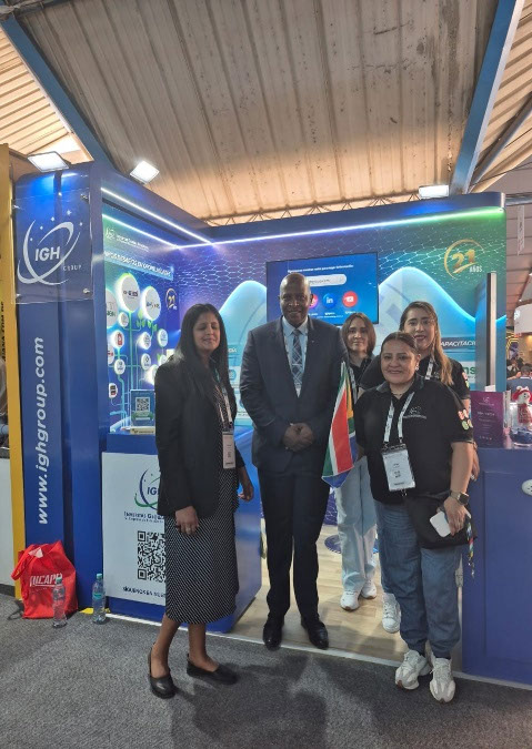 La Sra. Kerosha Ramjettan, Primera Secretaria de la Embajada de Sudáfrica en Chile, el Excmo. Sr. George Monyemangene, Embajador de Sudáfrica en Chile, y el personal de ventas de IGH Ingeniería S.A.