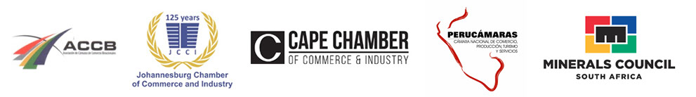 South African module at PERUMIN 37 Mining Convention. In the picture from left to right: Alwyn Van Biljon—Bird Machines (Pty) Ltd, Ms. Kerosha Ramjettan, First Secretary of the Embassy of South Africa in Chile, H.E. George Monyemangene, South African Ambassador to Chile, Mr. Justin Macnab—Consulmet, and Mr. Juan Jose Quiroga Coronel—Mining Engineering Chapter, Association of Professional Engineers of Peru and SAPCHAM Board Member.