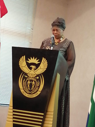 Embajadora Rachel N. Rasmeni de la Embajada de Sudáfrica en el Perú durante la Conferencia sobre Turismo en Sudáfrica. Club Empresarial - Febrero 25, 2020.